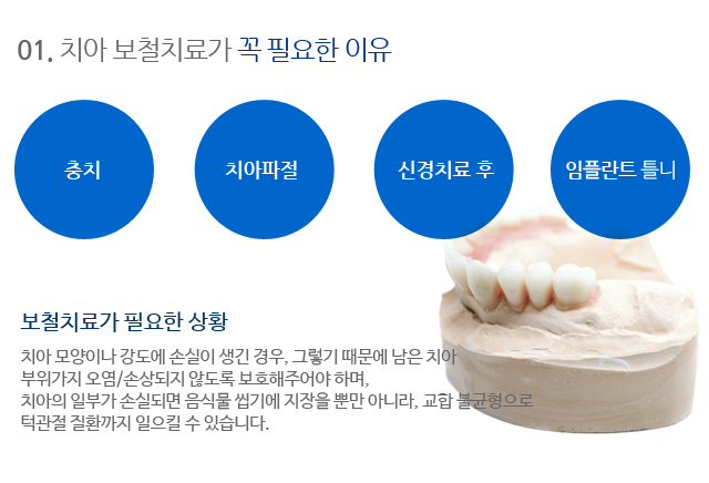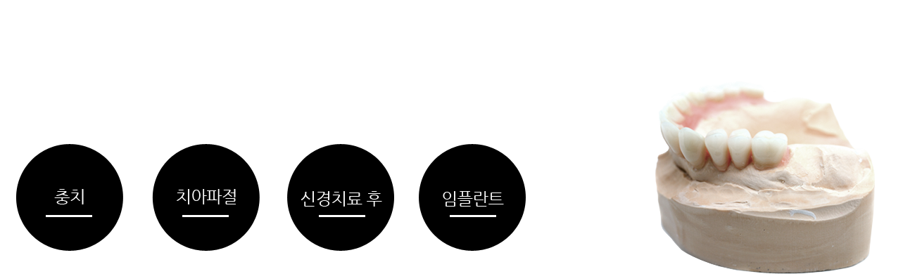 대부분 손실된 치아 부위를 삭제하는 치료를 하셨거나, 치아 모양이나 강도에 손실이 생긴 경우, 그렇기 때문에 남은 치아 부위가지 오염/손상되지 않도록 보호해주어야 하며,